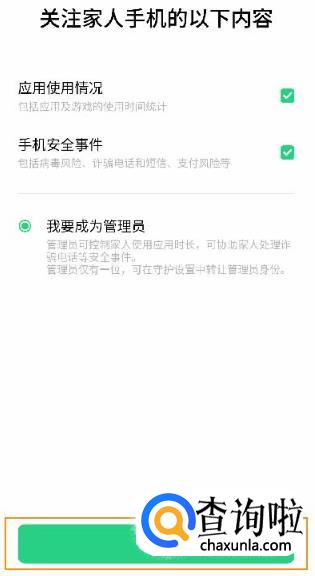 打开被守护手机的设置,点击加入远程守护。使用远程守护手机扫码打开信息设置界面,设置完成后点击完成两个手机就绑定成功了。