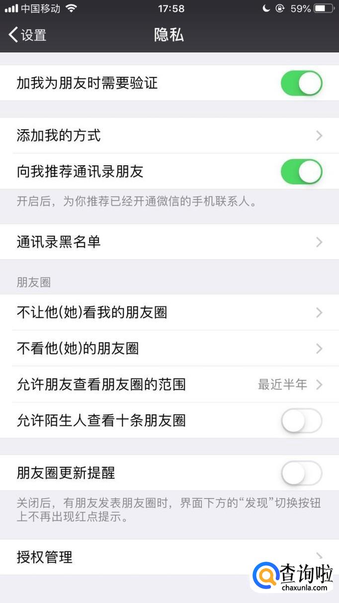 接着点击允许朋友查看朋友圈的范围,如下图所示。