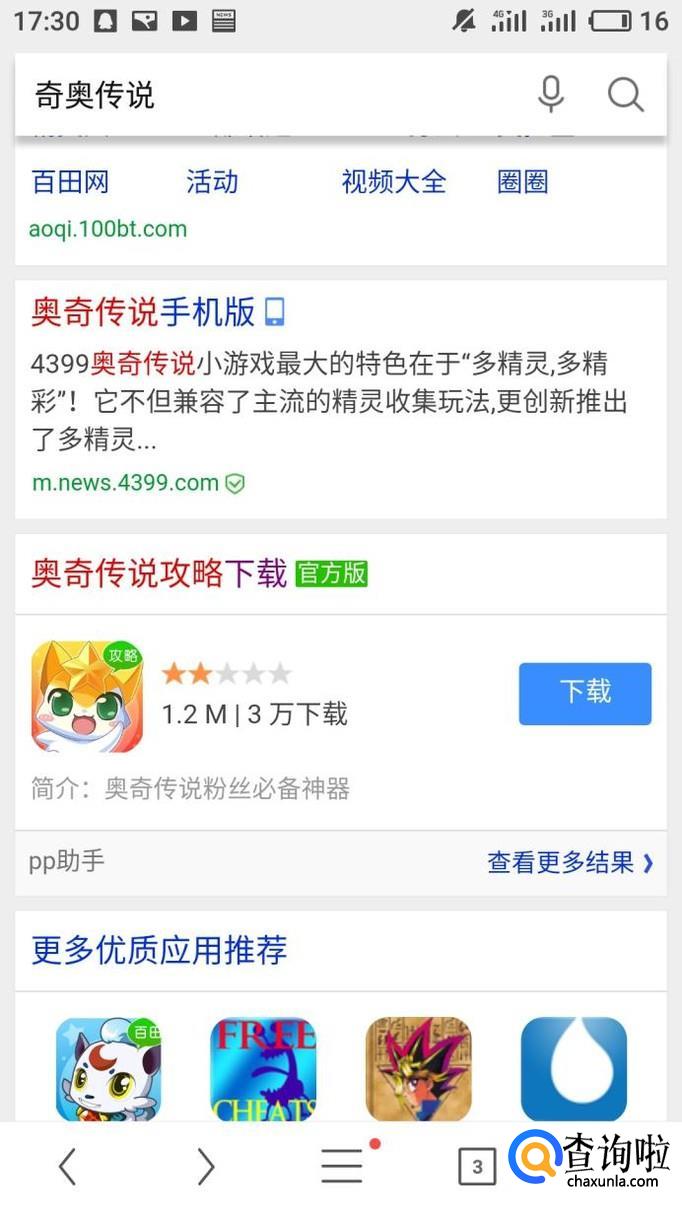 搜索成功后就可以找到奥奇传说的下载链接。