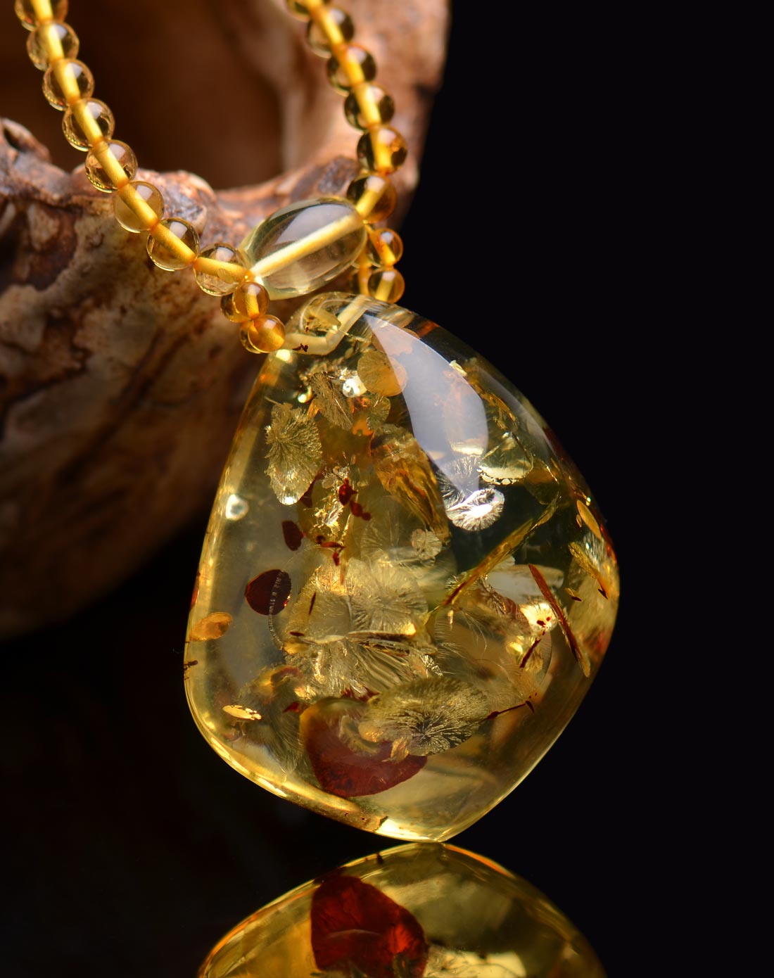 琥珀是史前松树枝的化石,形成于4000万年至6000万年前。琥珀的主要成分是碳,氢,氧以及少量的硫,硬度2-3,比重1.05-1.10,熔点150℃-180℃,燃点250℃- 375℃。