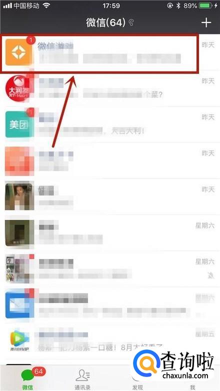 接着点击这个微信对话框,就能够查看我们未查看的微信内容。你学会了吗?赶快动手试一试吧。