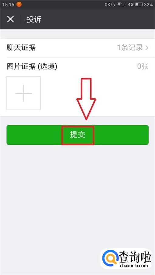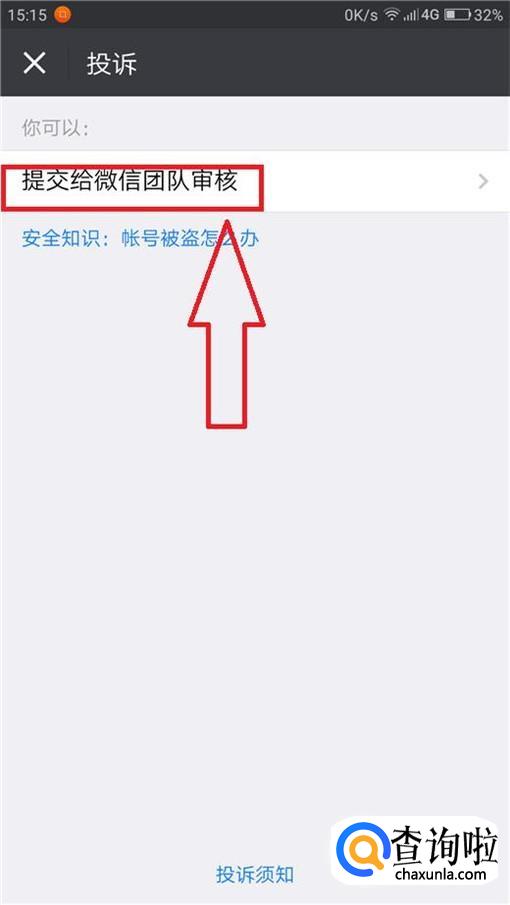 然后我们选择第一个选项:“提交给微信团队审核”,上传聊天记录,点击提交。