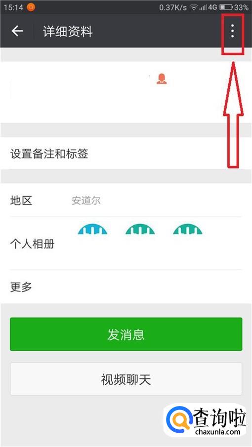 当我们在浏览朋友圈的时候,如果遇到不良信息的话,点击他的头像,在详细资料页面点击右上角的菜单栏。