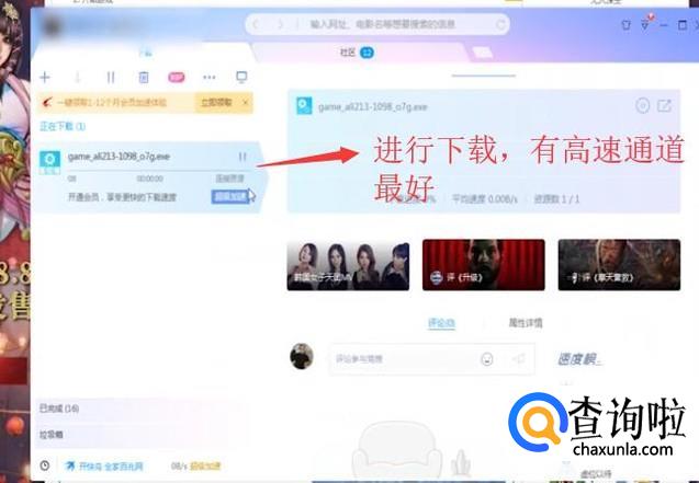 最后进入下载界面,这里如果有高速通道就会更快,如下图所示