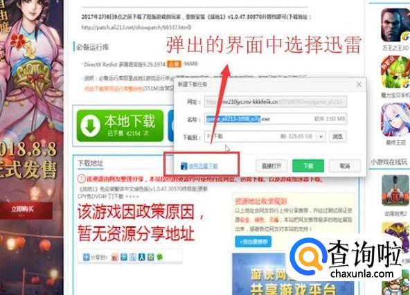 在弹出的界面中我们选择迅雷下载方式,如下图所示