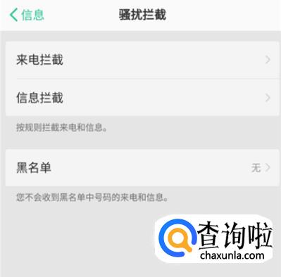 在里面的【来电拦截】-【黑名单】等选项中,设置好你需要的拦截方式以及内容就可以啦。
