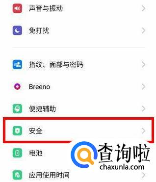 在设置里面找到并点击【安全】选项。