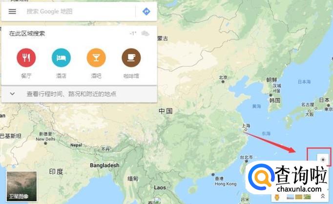 来到谷歌地图主页面,我们再点击右下方的圆点,定位自己的位置,即可看到自己所在的位置