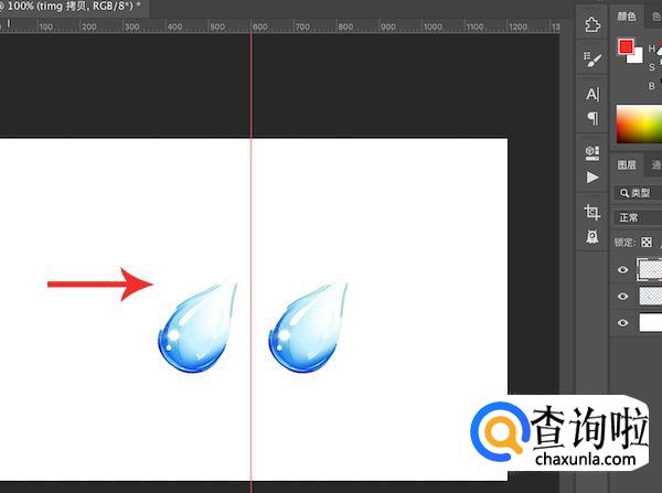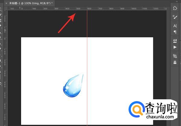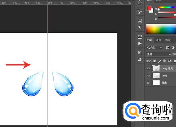 图片打开之后,先在标尺上拖动出来一条纵向的居中辅助线,这样能够在之后做镜像位置的时候稍微直观一点。