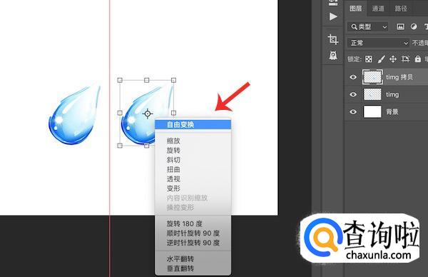 选择右侧的新图层,看CTRL+T进入变换,右键点击图片进入自由变换,选择下方“水平翻转”