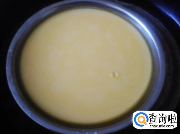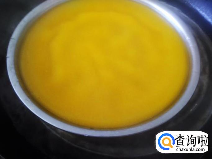 锅装适量的水煮沸,然后把桔子糊倒到盘子,放到锅里大火蒸4分钟左右。