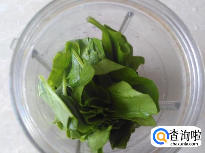 首先把菠菜叶清洗干净,然后放到打浆机加小半碗水进去打成糊。