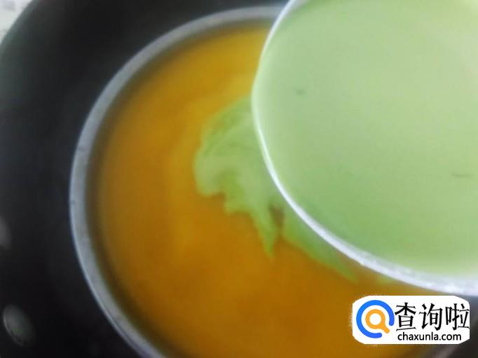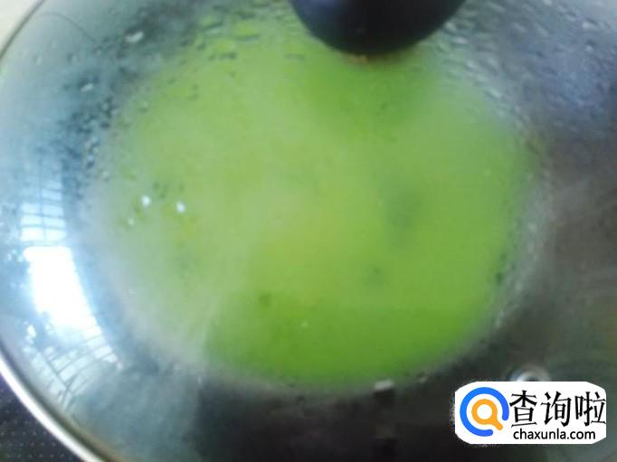 打开盖子,倒菠菜糊进去。