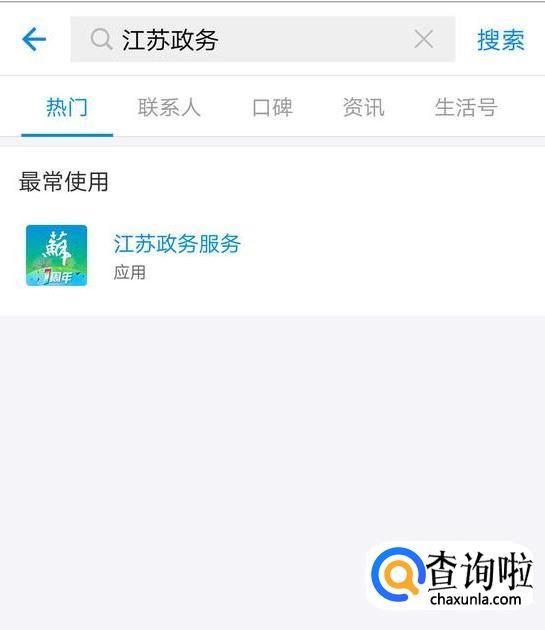 打开支付宝的好友界面,找到搜索栏搜索“江苏政务,下方有“江苏政务服务”选项。