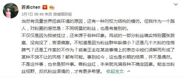 这件事情牵涉的并不是所谓的小众群体,而是整个创作群体。不仅是写手圈,同时各个制作公司可能也会受到影响。因此不少微博大v们纷纷出来说话,当然并不是针对肖战,但是却表达了粉圈恶习的不满。