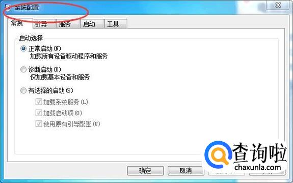 然后会弹出【系统配置对话框】,默认为【常规】选项卡,如下图所示: