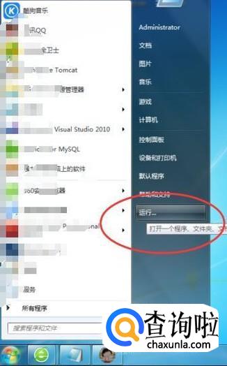 点击电脑左侧的开始图标,然后点击【运行】即可,如下图所示:
