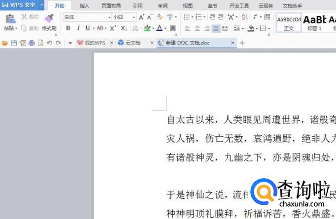 首先,打开一篇普通的WPS文档用于演示。