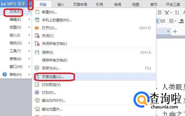 点击左上角“WPS文字”旁边的向下箭头,下拉菜单中点击“文件”,扩展菜单中选择“页面设置”。