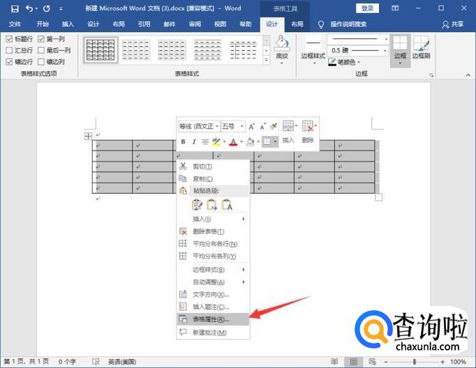 右键单击表格,选择表格属性