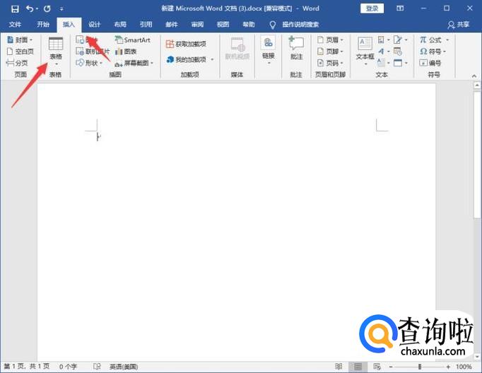 打开Word文档,点击菜单栏插入--表格