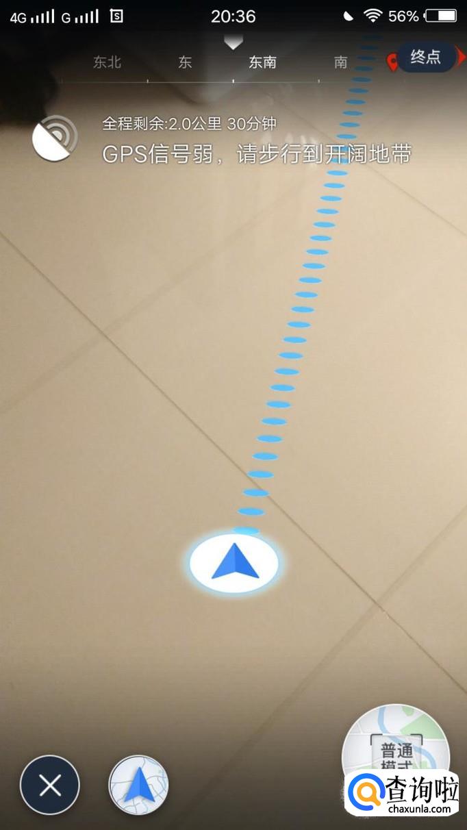 这样,我们就进入了道路的实景模式了,我们只需要根据语音提示,选择正确的道路和方向前往目的地就可以了。