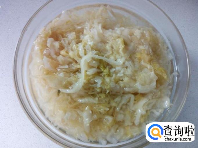 酸菜用水浸泡一下,喜欢吃酸口味就少泡一会,不喜欢吃过酸的口味就泡的时间多一些(我这是购买的切好的现成酸菜,如果是整颗的酸菜,切成丝)。然后用水清洗一下,攥干水分,备用。