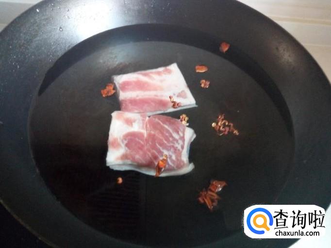 把五花肉放入冷水锅中,放入花椒,八角,烧开,煮十分钟的时间。
