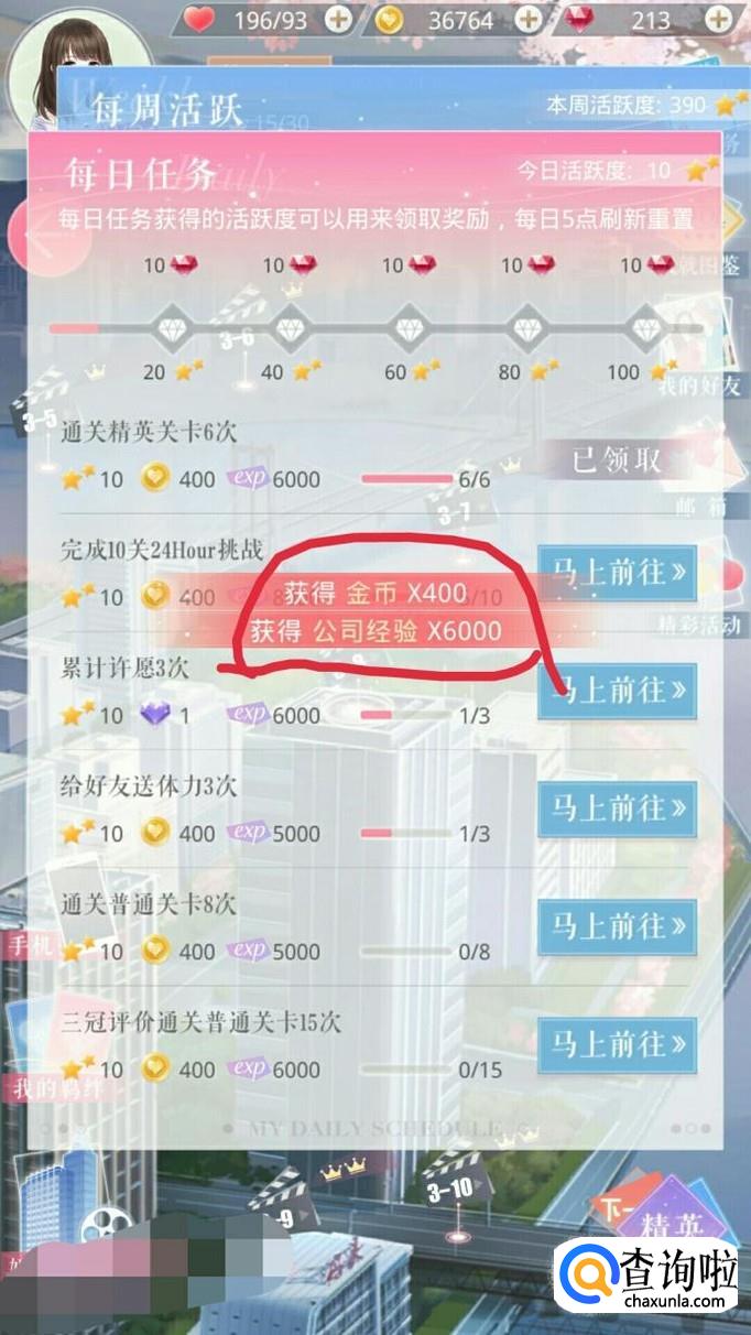 完成每日任务可以获取大量的经验值。每日任务每天可以进行一次。