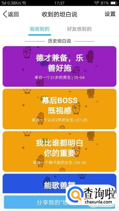 进入之后,可以看到你收到的全部坦白说。