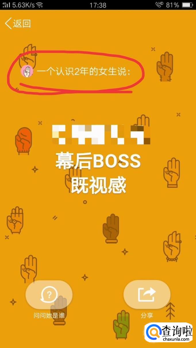 点击你想要知道的对方身份的坦白说卡片,进入之后可以看到最上面的对方的匿名身份,根据这一提示你可以排除一部分人。之后和对方进行聊天,旁敲侧击的问,慢慢聊就可以猜出对方的身份了。一般发坦白说的好友都是比较熟的朋友,每个人的聊天方式和习惯都不一样,细心观察就可以猜出对方的身份了。