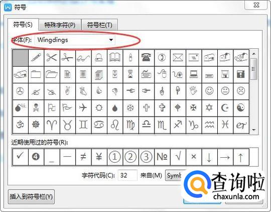 修改字体为【Wingdings】,如下图所示: