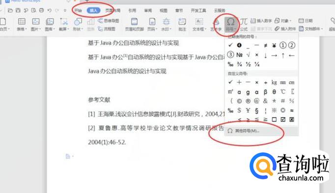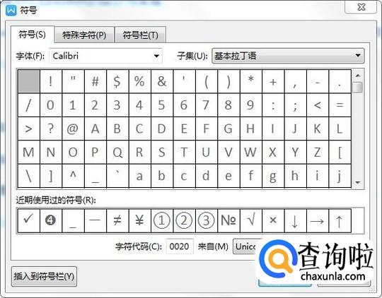 切换到【插入】选项卡,点击【符号】,选择【其他符号】,可以弹出【符号】窗口,如下图所示: