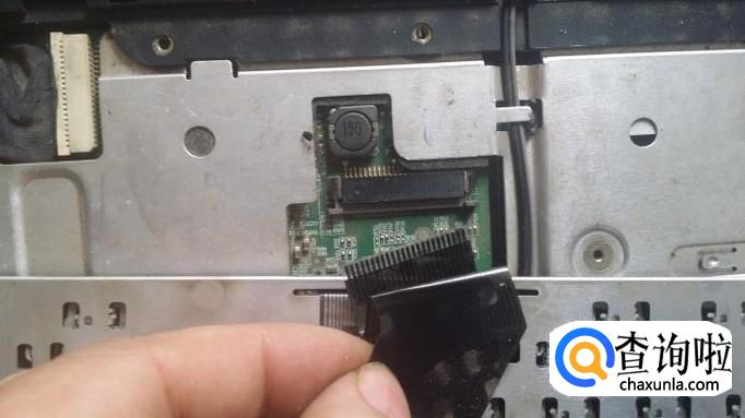 把排线插座两边的塑料卡扣推出,才能抽出排线,这样键盘就拆下来了。