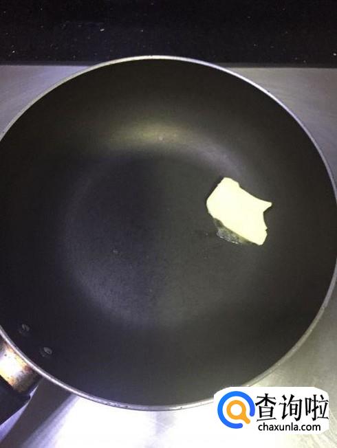 取一小块黄油,打开电饼铛,预热之后,将这一小块黄油放进去,用铲子不断压几下,让黄油快速的溶化。
