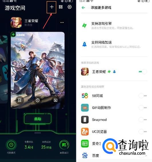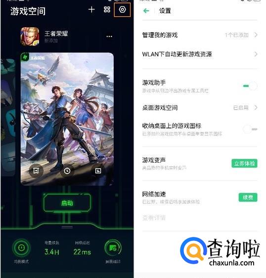 点击手机桌面的游戏空间图标,会进入以下界面(这里以:王者荣耀为例)。