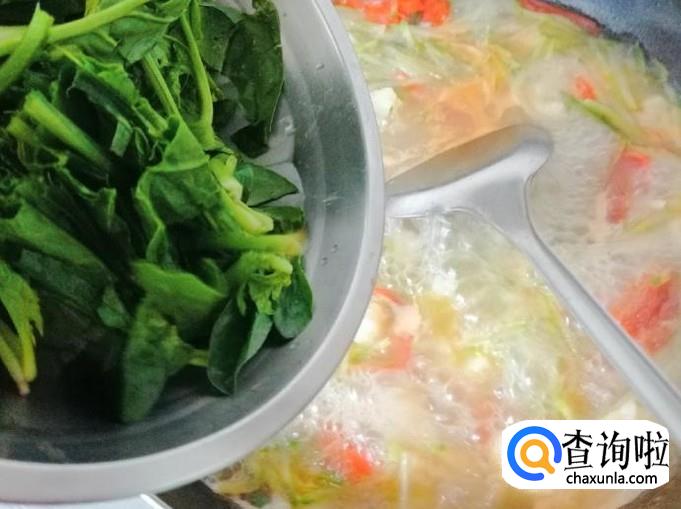 西红柿萝卜丝虾皮菠菜疙瘩汤的做法