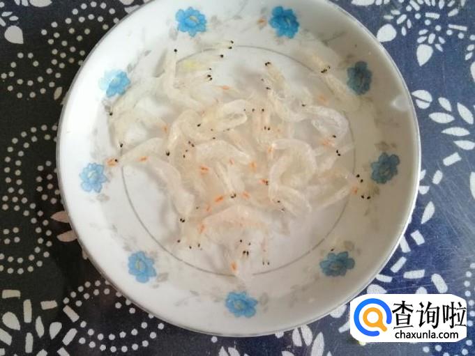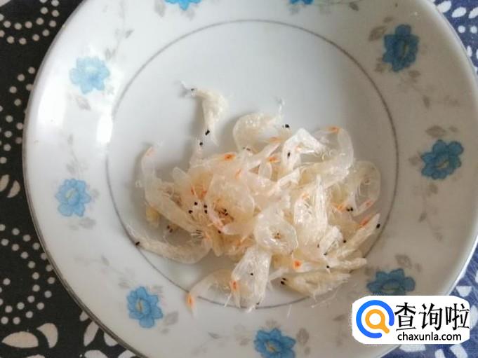 虾皮可以补钙,我们在这里用它也可以提鲜味,所以我用的量不多,少许虾皮洗净,温水泡半个小时,滤水装入盘中待用。