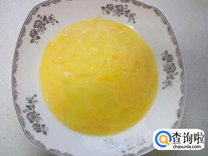 鸡蛋打入盘中,搅拌成鸡蛋液,备用。