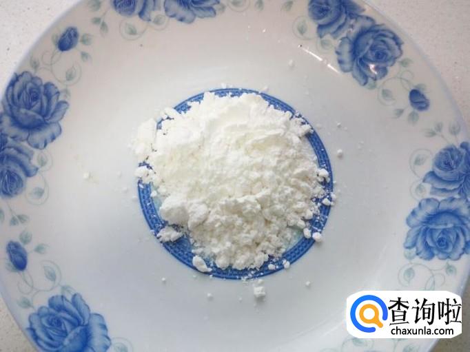盘里放入淀粉,兑入少量的水,调和粘稠,备用。