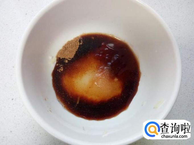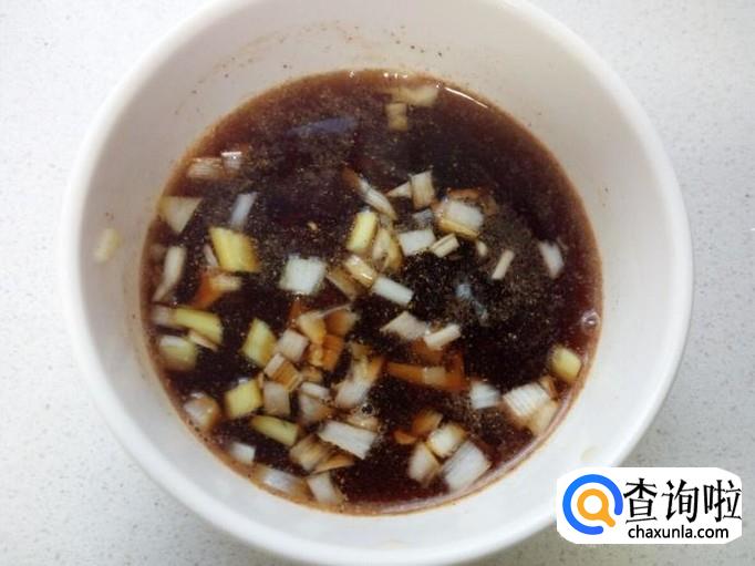 碗里放入盐,味精,五香粉,白糖,蚝油,红烧酱油,料酒,兑水。放入切好的葱,姜,蒜,调和成料汁。