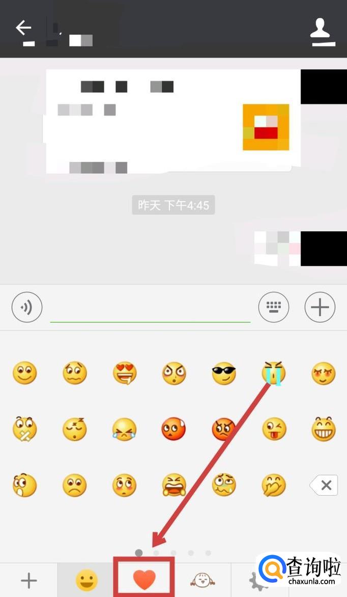 然后点击底部的心形图案,这里是你收藏的表情包,如图所示。