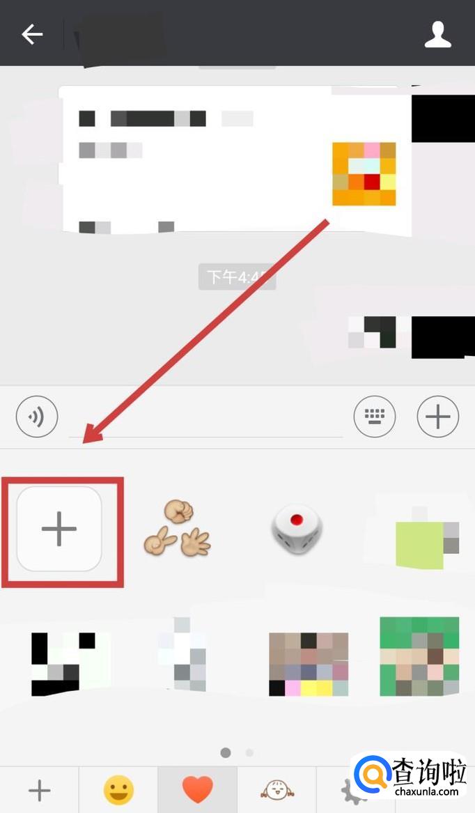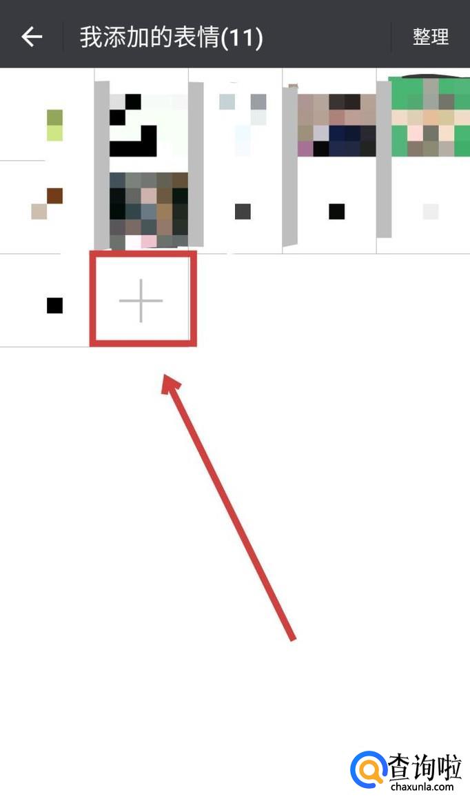 这里就是你添加收藏的表情包了,然后点击“+”号,如图所示。