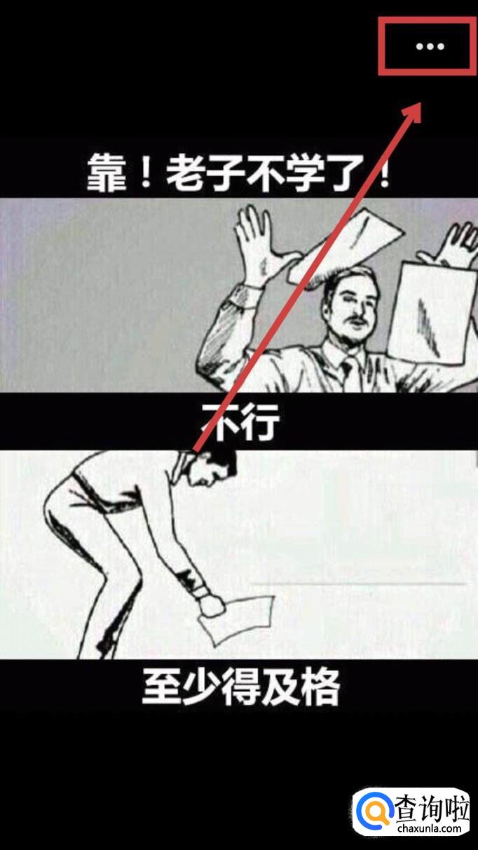 在图片右上角找到三个点,点击进入;或者长按表情包,直到底部弹出选项卡。