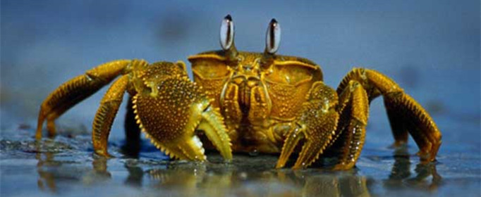 螃蟹的大部分时间是在寻找食物,它们一般并不挑食,只要螯能够弄到的食物都可以吃,小鱼虾是它们的最爱,不过有些螃蟹吃海藻,甚至于连动物尸体和植物都能吃。