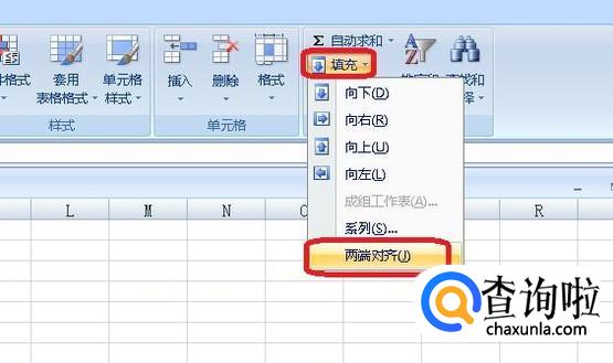 然后,点击菜单栏“开始”下面工具栏中的“填充”,在出现的下拉菜单中选择“两端对齐”。