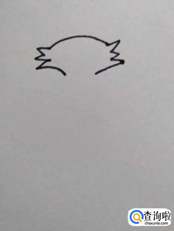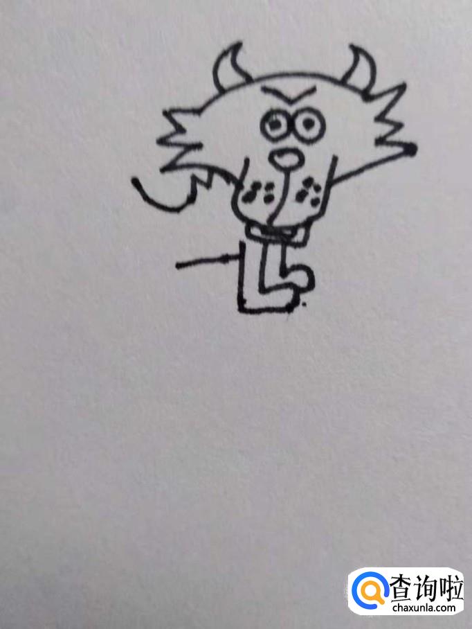 画出狼的尾巴,狼的尾巴整个向上翘起,线条都向上走,靠近末端时最粗,在末端向内拐一下,尾巴两侧向上收,线条弧度要平滑流畅。