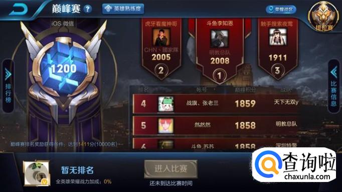 这样我们就可以进入比赛了。不过小编要提醒大家的是要想参加巅峰赛是有时间限制的。平常是晚上8点到12点,周末则为晚上6点到12点。