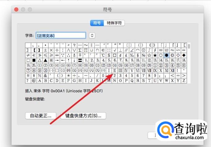 这样就会弹出一个窗口,在这里我们就可以看到有罗马数字的符号了,要输入哪个,就点击一个就行了。