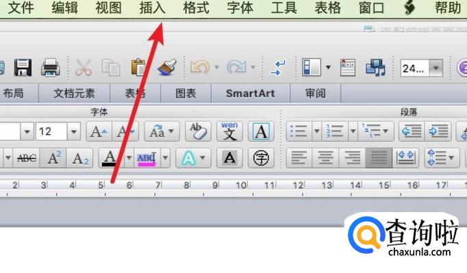 打开word软件,点击菜单栏上方的‘插入’菜单。